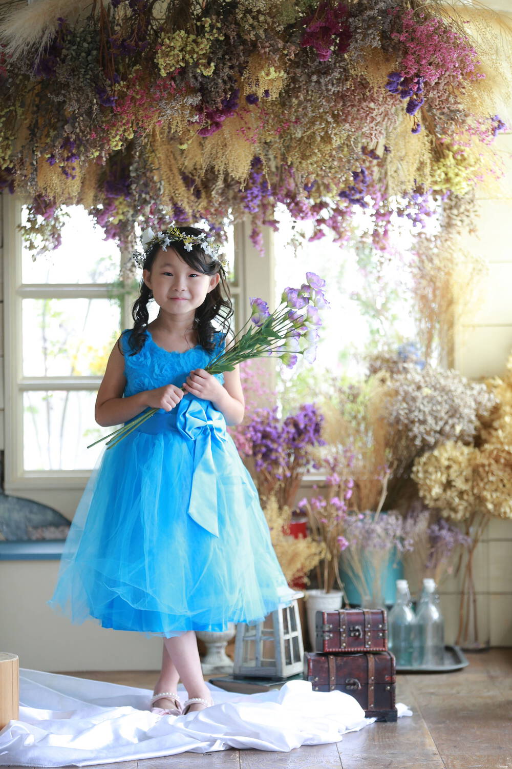 1歳のバースディ以来、7歳の七五三の写真を撮っていただきました。お店に入ったときから、ようちゃんとさっちゃんが終始娘の笑顔を引き出してくださり、お着物もヘアメイクも娘に合わせてくださって、とても素敵な写真をいただくことができました。撮影翌日もその次の日もほわ~と幸せに浸っていたほどです。ピアノの発表会が2年連続コロナで中止になり、舞台に上がることができなかったドレスと靴たち。娘は着ない!!と言っていたので、もうさよならするつもりで念のため撮影日に持って行きましたが、ようちゃんにのせられると、娘はまだ履ける!ときつくなった靴も履いて、笑顔で撮影に臨んでいました。当初の予定と変わってしまって申し訳なかったのですが、当時、どこも売り切れでお揃いのドレスを用意できないとヒヤヒヤしたことがやっと安堵に変わりました。やっぱりプロの方に撮っていただく写真は一生の宝物です。大切にしていきます。どうもありがとうございました。