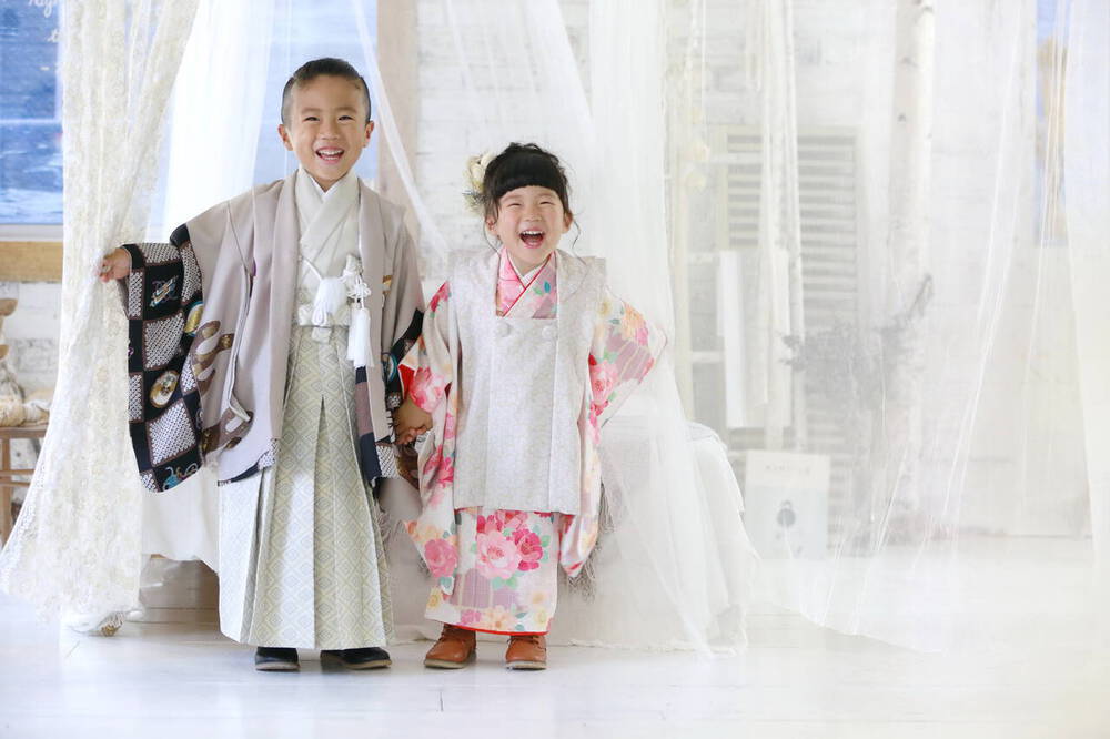 5歳になる息子と3歳の娘の二人の七五三撮影でお伺いしました。二人とも人生初のフォトスタジオだったのでどうなるのか少し不安でしたが、可愛い内装と優しいお姉さんたちのおかげで着付けの時からすでにノリノリでした。