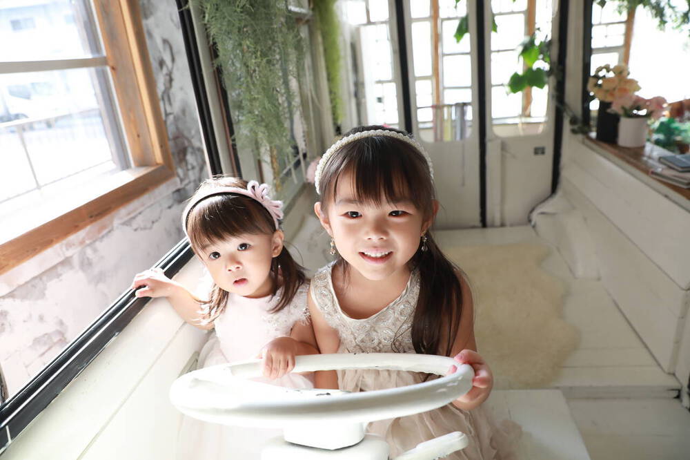 上の子から撮影が始まると下の子がお姉ちゃんの所に行きたくて大泣きし、そこで機転を利かせて二人撮影に変更して頂いたお陰でニッコリ笑顔で撮影に臨むことができました。