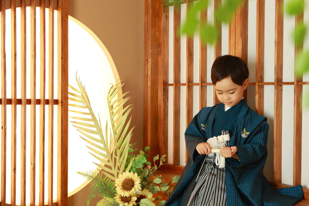 青が好きな長男。ちょっと違う色でもいいんじゃない⁉︎と思いましたが、本人が気に入った物にしようと自分で着物を選びました。カメラマンさんに言われた通りにポーズを決め、最初は緊張していましたが段々と緊張もほぐれ素敵に撮って頂きました。