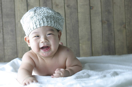 韓国にあるオーナーさんのスタジオで撮影した写真です。100日記念に撮ったのですが、うちの子は笑いすぎてカメラマンに「もう笑わなくていい!」とまで言われました*^^*