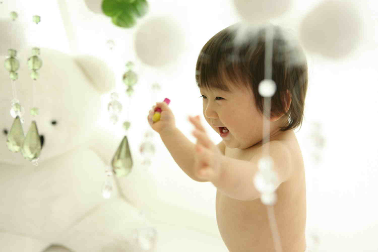 わが息子ながらきらきらのビーズに囲まれて微笑む姿が天使のようで