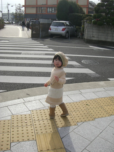 おかん お手製のニットワンピ&帽子を着て お出掛け?♪