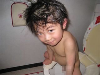 トイレでおしっこしているのを見て(」゜ロ゜)」