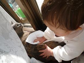そんな私を見ているのか、娘もネコを拭いてくれます。ネコは、やめてよ~!と鳴きながらも、娘のやりたいようにさせてくれています。