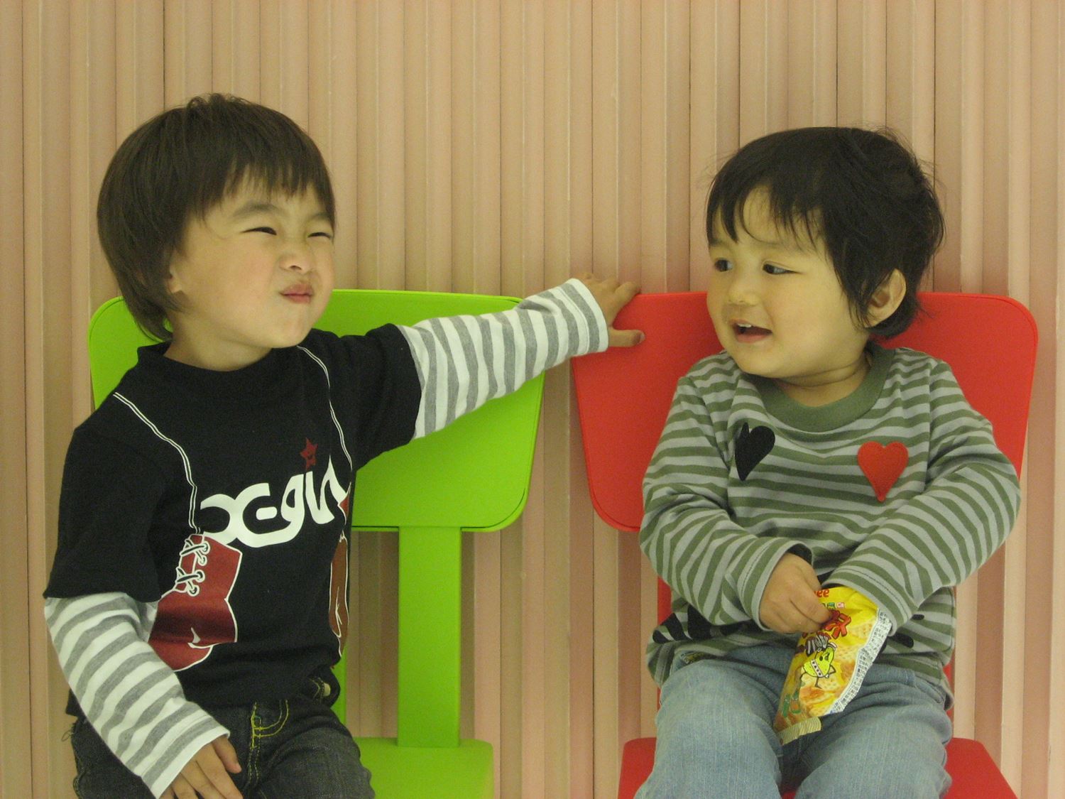 撮影の合間にお菓子を軽く奪い合いをしてる