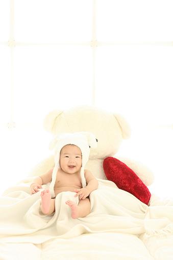 お宮参り写真は爆睡、3週間前に別の写真スタジオで撮って貰ったときは