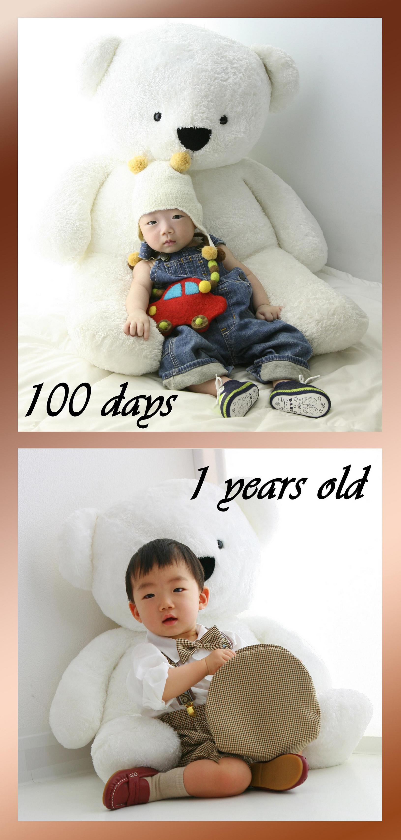 ライフスタジオにお世話になって早3度目、いつもいつも素敵な写真を撮っていただき、ありがとうございます。これが、「ママ~!!!(ToT)/」と泣いてぐずった後の写真!?とびっくりしました。また、くまさんを見ると息子の成長がよくわかり、大変うれしくなりました。
