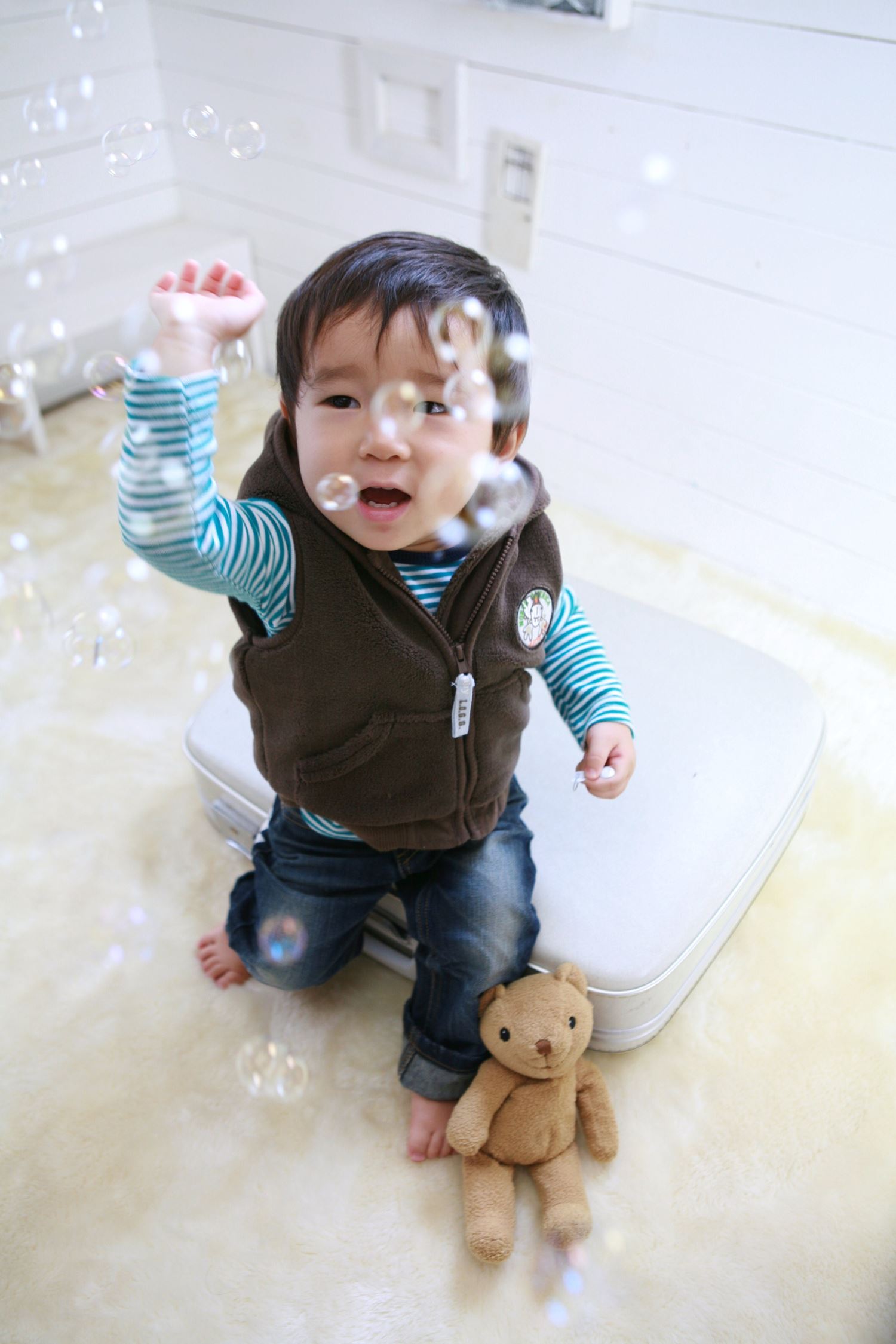 私の方はまんまとシャボン玉にやられてのどを痛めましたが、息子のはしゃぎっぷりと帽子をかぶっての撮影と引き換えということでかわいい写真がとれました♪