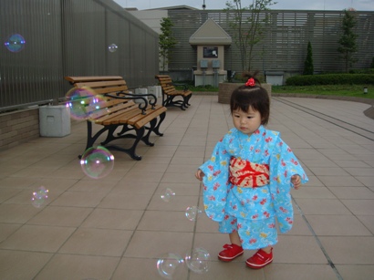 浴衣でシャボン玉