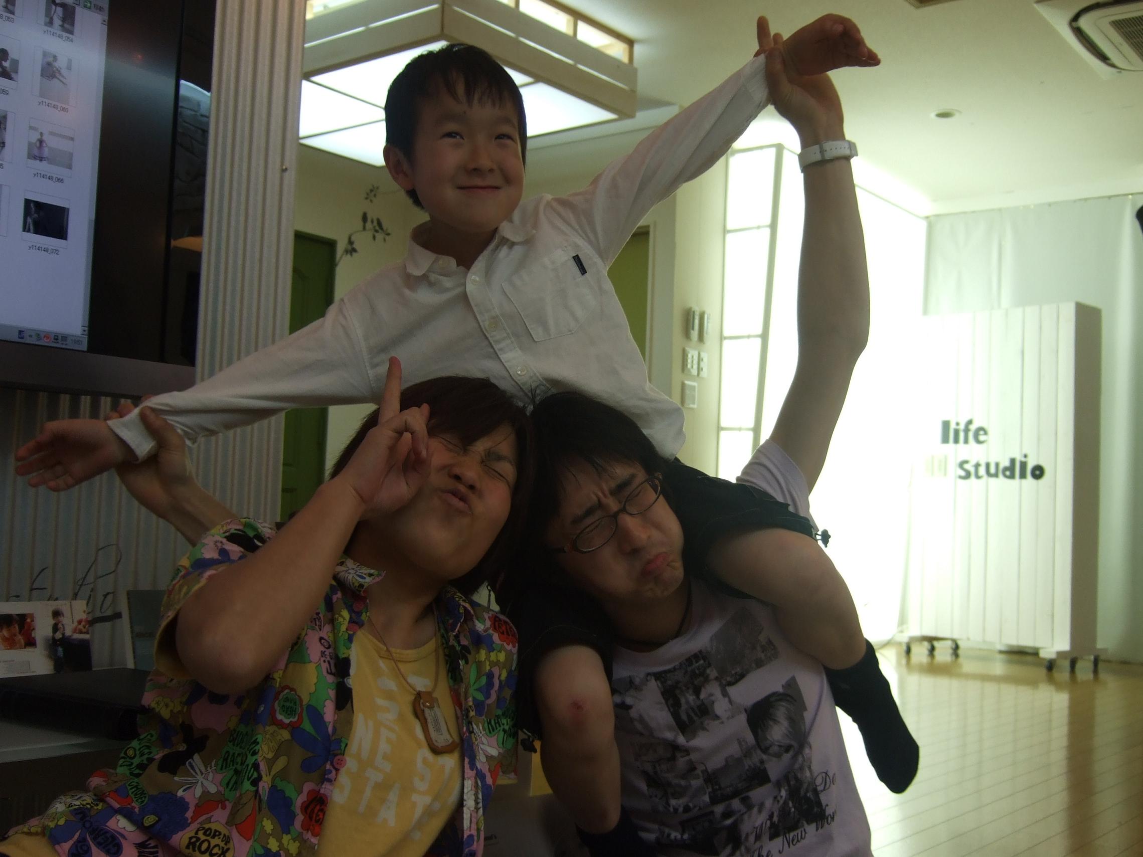 撮影後、河野さん、加藤さん、息子で変顔大会が始まったところを娘がパチリ☆