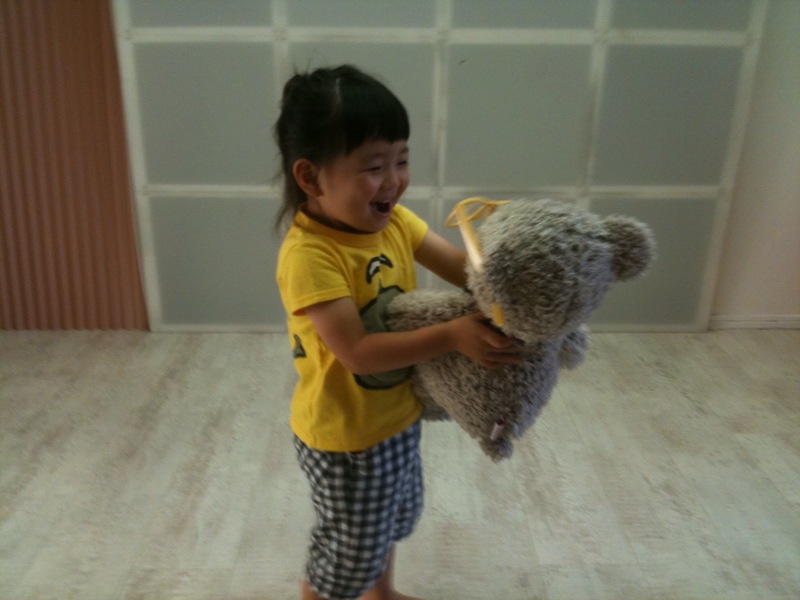 休憩中も撮影中も娘にはあまり区別が無かったようで、くまちゃん相手に楽しく遊んでいました。