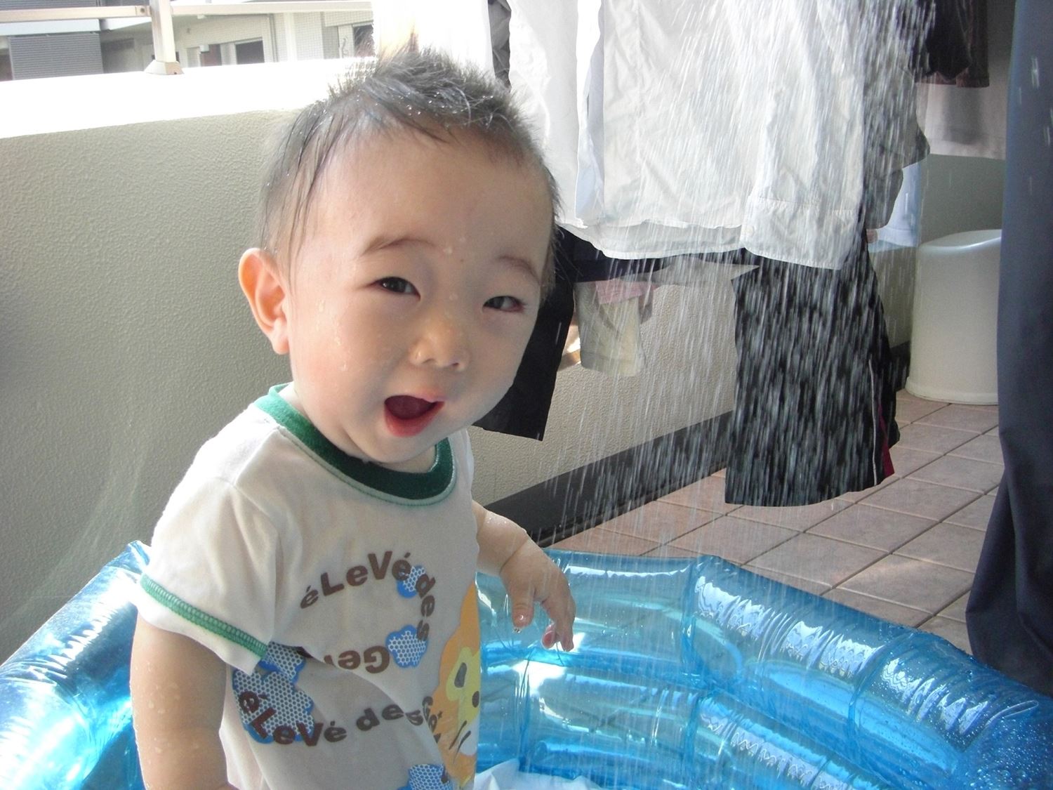 「ベランダでの大好きな水遊び」です。