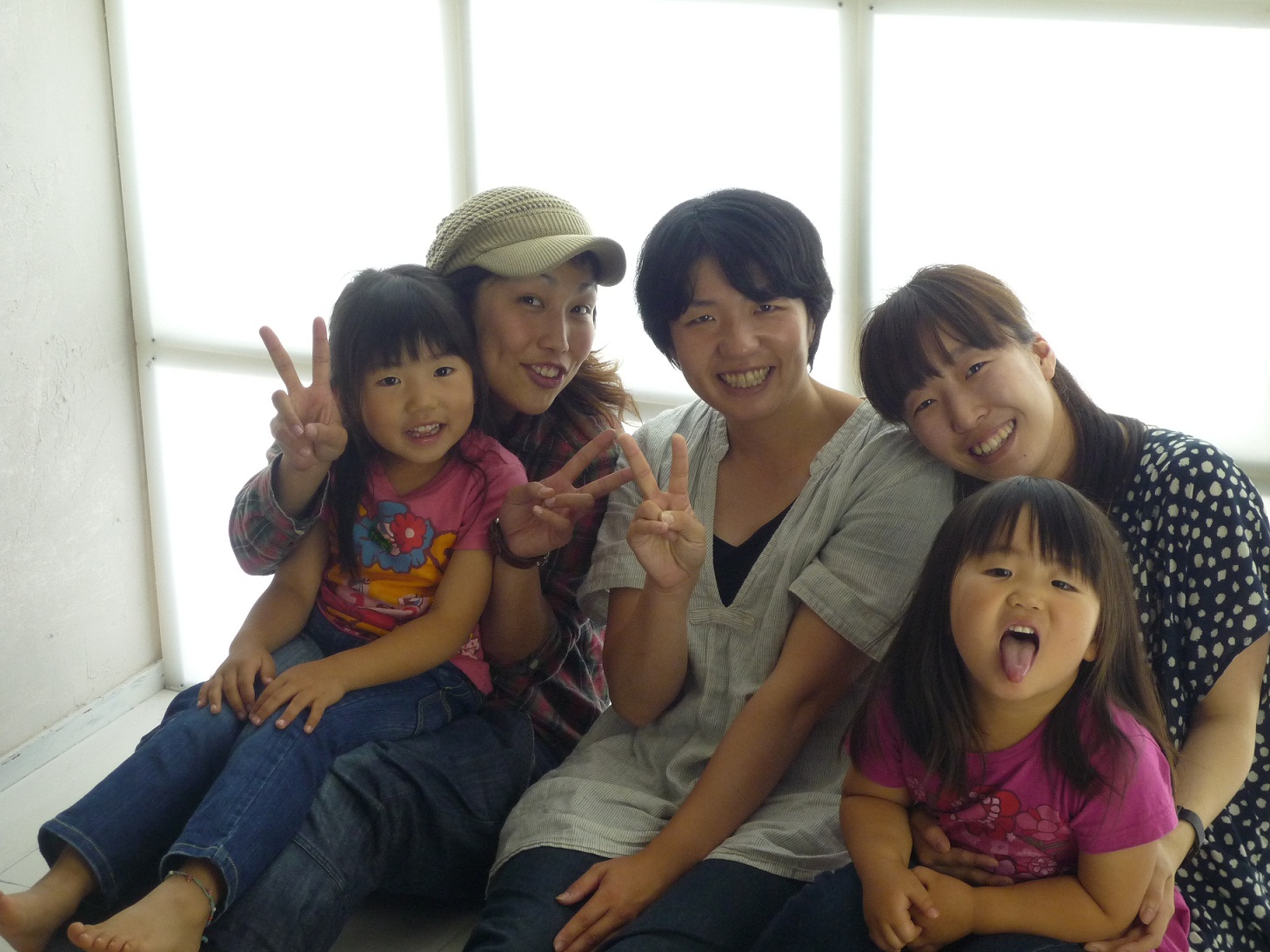 飛びきりの河野スマイルで娘たちを巻き込んで、家族4人がニッコニコで
