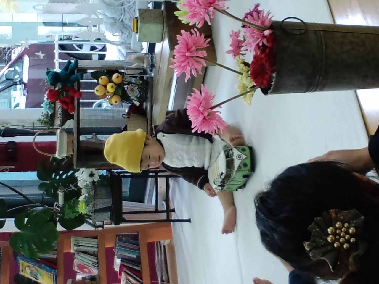 撮影が終わりさっそくばぁば(私の母)のところに行きました。手作りの帽子&ベストで素敵な写真を撮ってもらえたのでとっても嬉しそうで照れ臭そうでした(*^_^*)