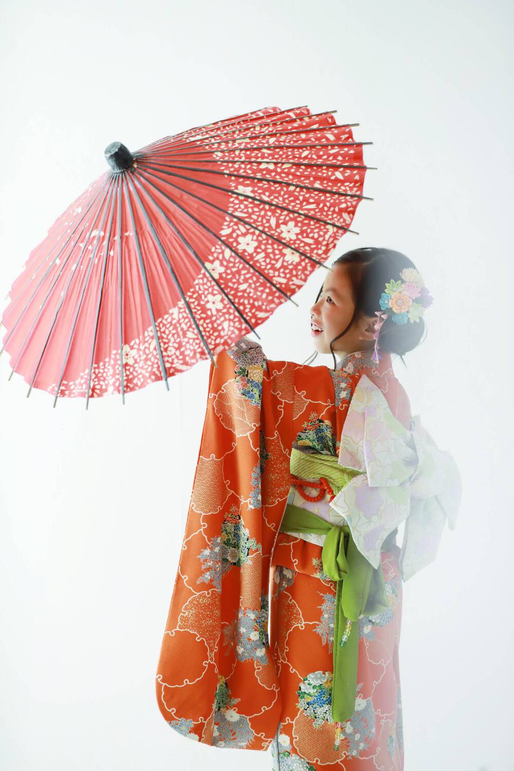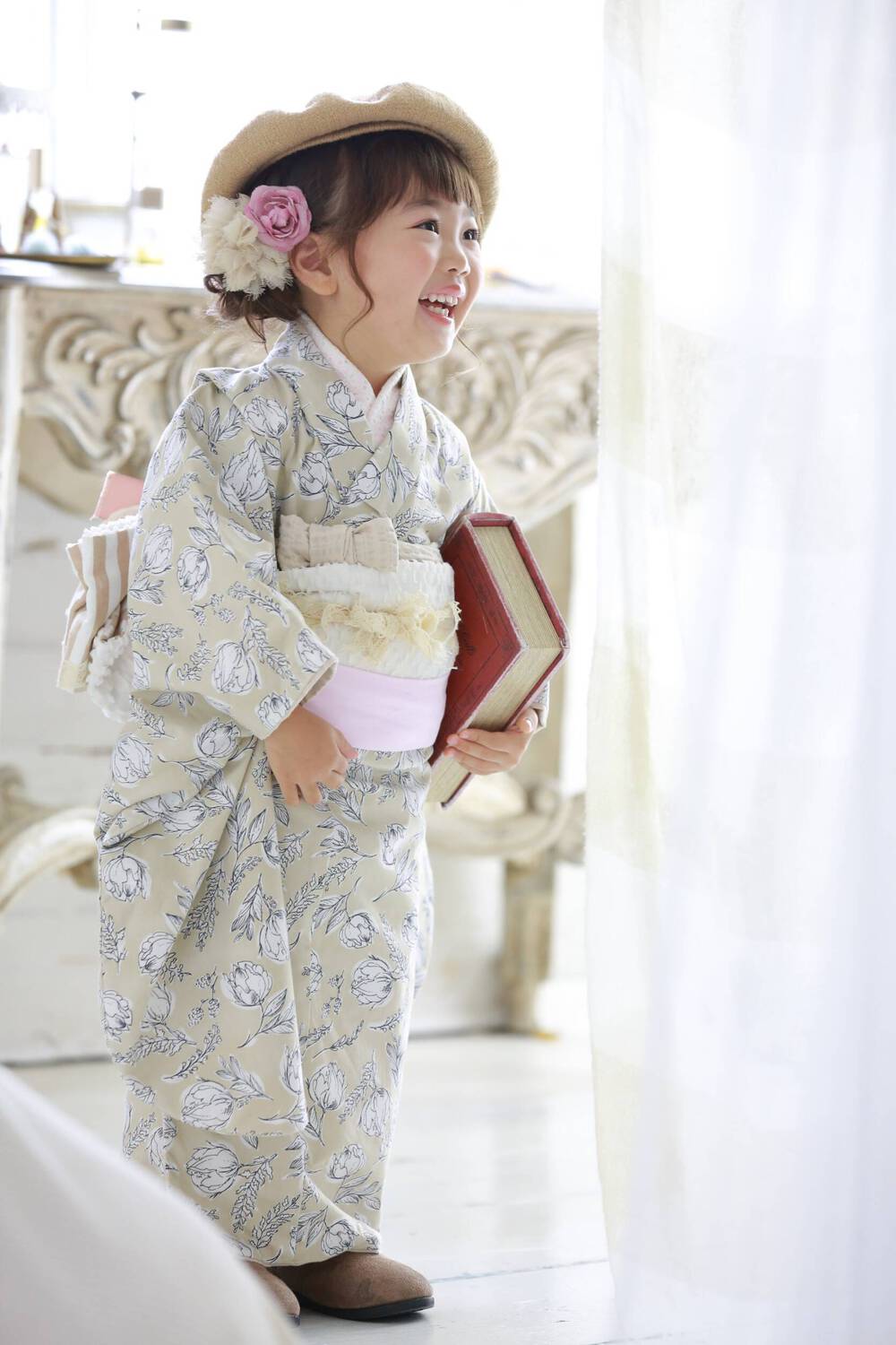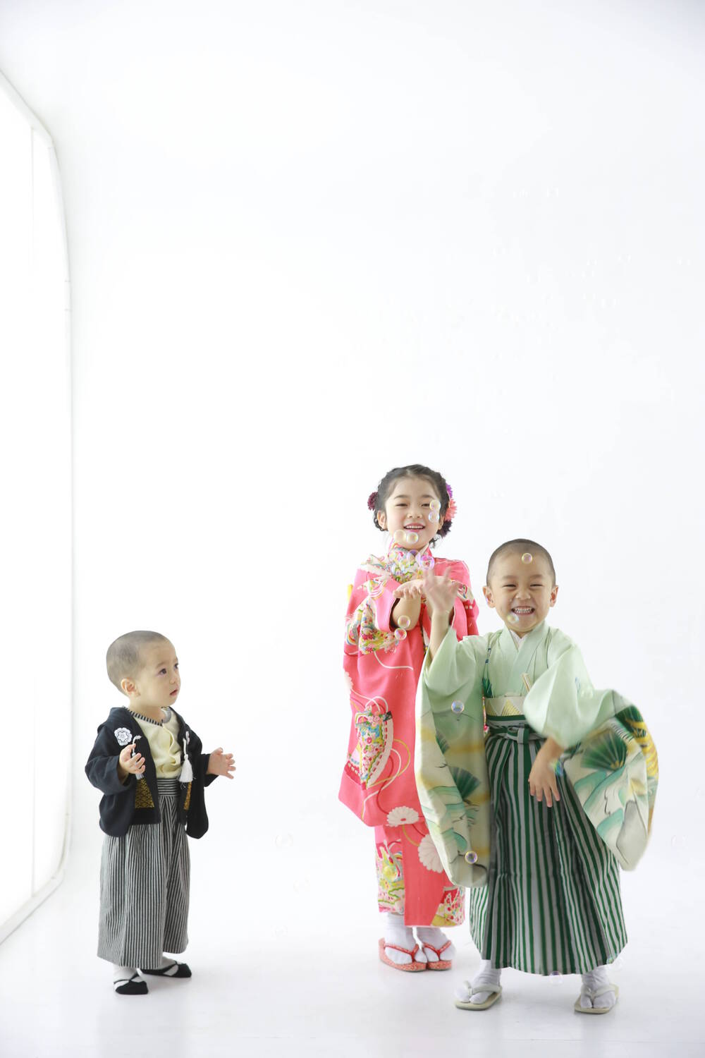 長女、7歳 長男、5歳、次男、1歳の記念で写真撮影をしました。 長女は、ヘアメイクと着付けしてもらうことに大興奮!かわ...