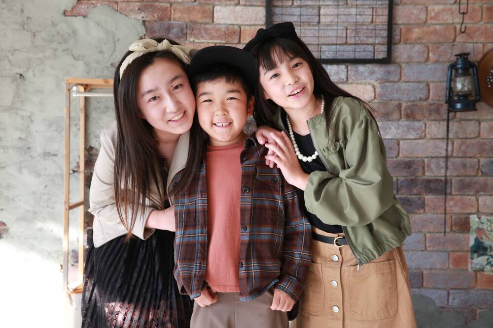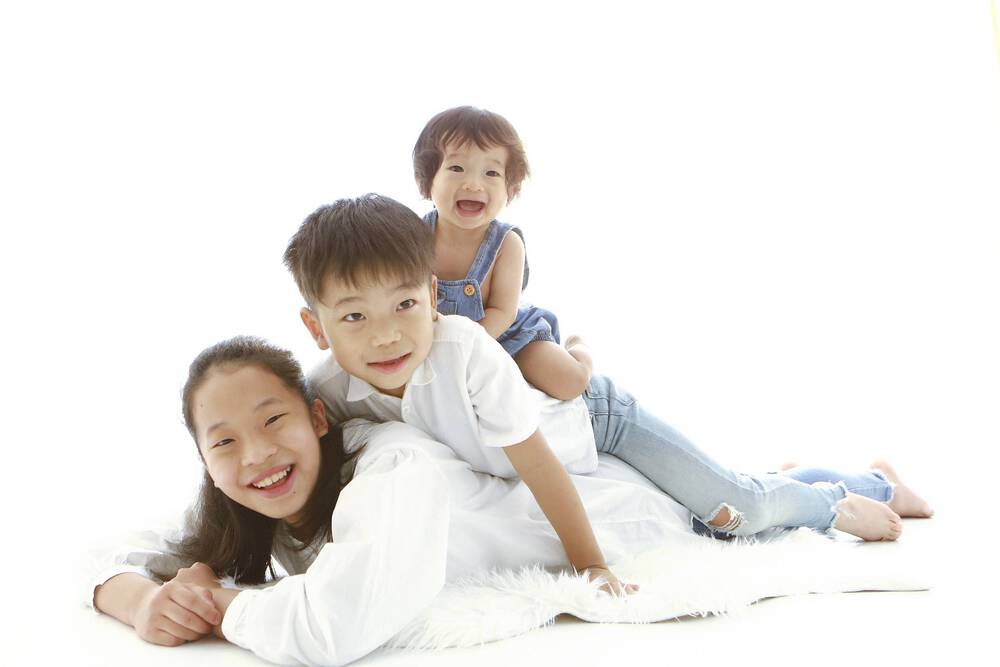 最初は機嫌がイマイチで大変でしたが、可愛い写真をたくさん撮ってもらいました!特にリクエストで撮ってもらった3人ピラミッド...