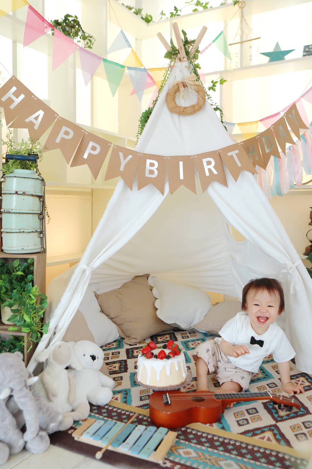 1歳の誕生日当日に予約が取れ、撮影していただきました。 素敵なインテリアや小物に囲まれ、乗せ上手なカメラマンさんスタッ...