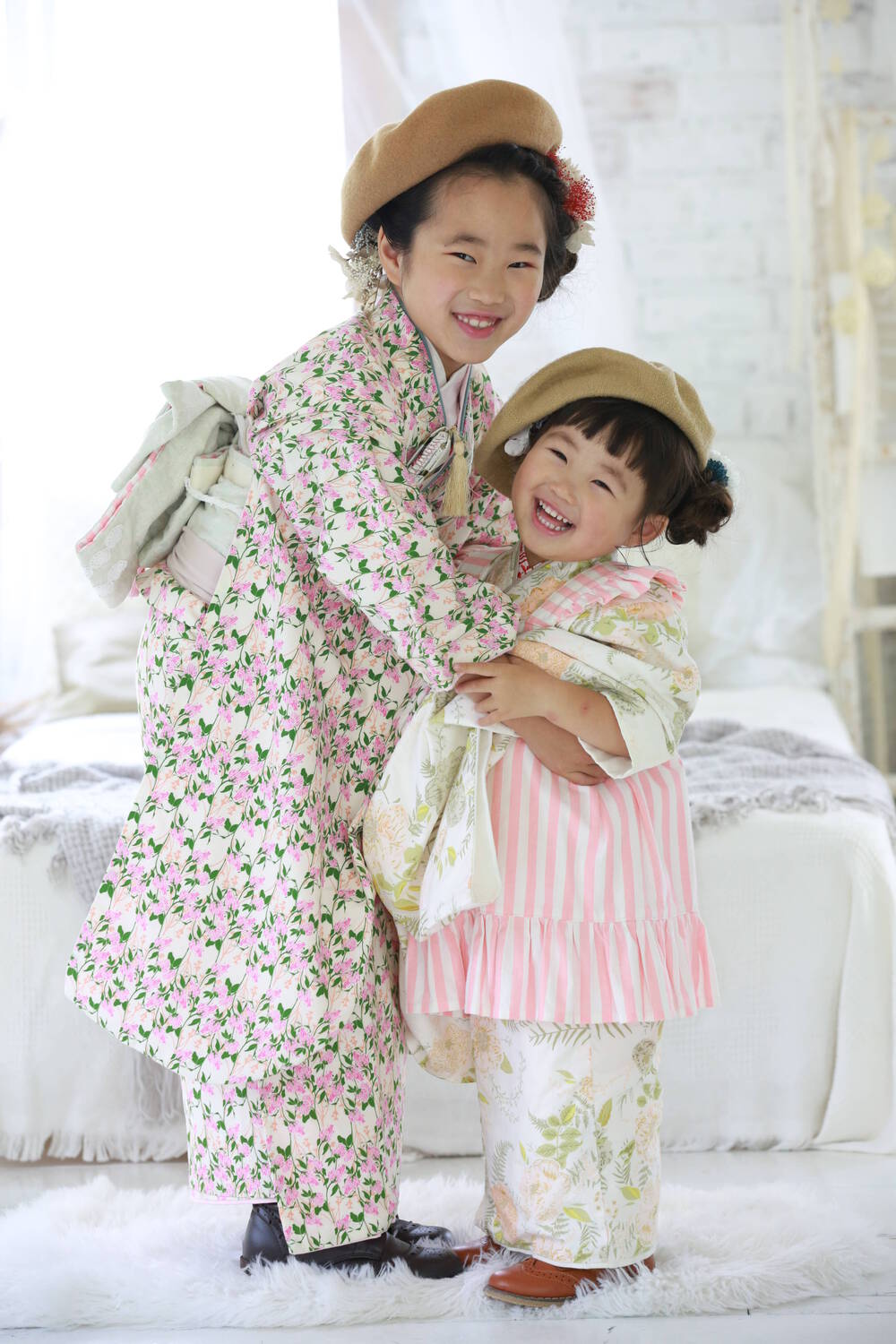 7歳、3歳姉妹の七五三撮影に初めてライフスタジオを利用させていただきました! 和モダンな衣装で、シャビーシックな店内!...