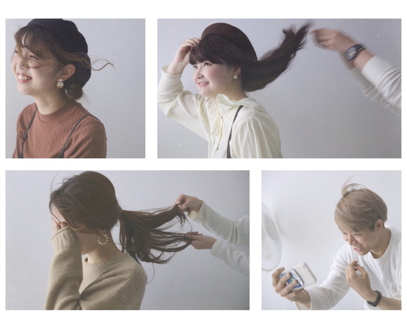 前髪が顔にかかって笑ってしまうのんちゃん (写真左上)