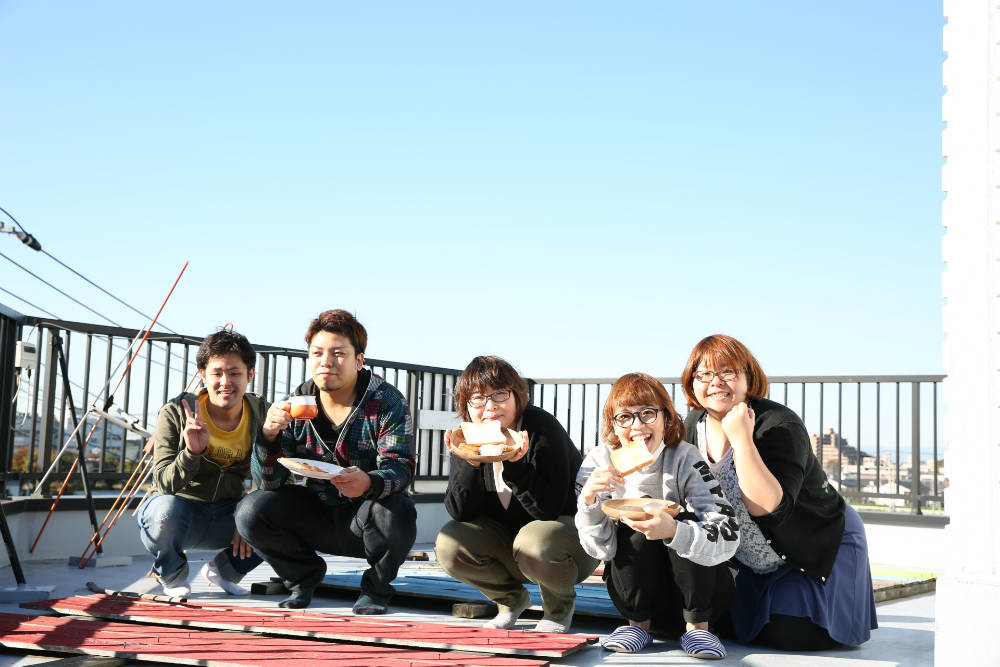 「朝食、屋上で食べましょう!!!」と提案しました。