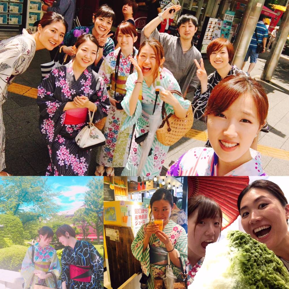 浴衣を皆で着ているせいか外国人にも話しかけられて一緒に写真もいっぱい撮ってきました!浴衣着て浅草グルメも楽しめることが出来ました~