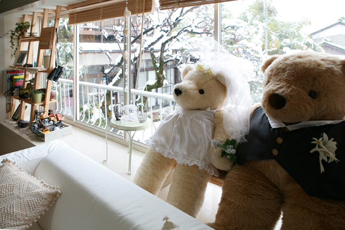 寒いので昨日はバルコニーでの撮影はしませんでしたがウェディングドレスに雪っていう組み合わせもなかなか素敵ですよね?