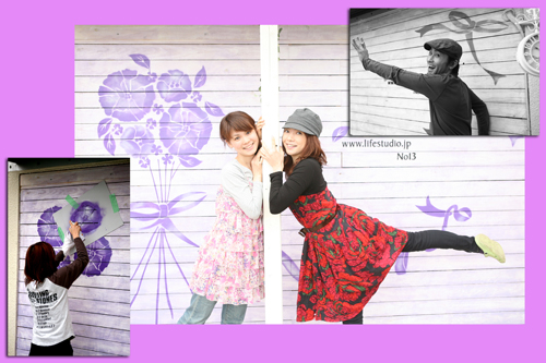 そのスペースの右手の木の壁一面にスプレーアートを施してみました。