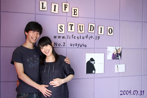 お二人の共通の元はお友達の家でマタニティーの記念撮影。