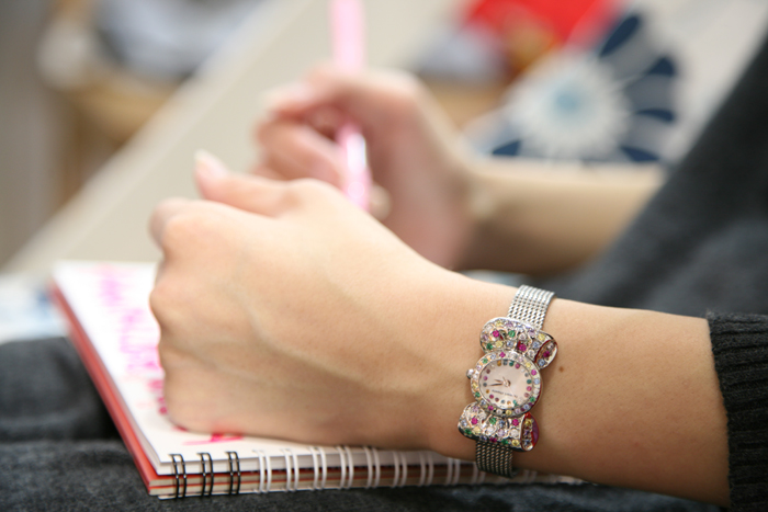 色とりどりの石が埋め込まれたこの時計以上に、輝いて見えました。