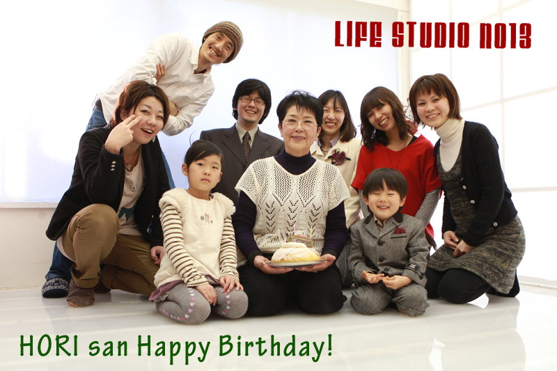 所沢店の着物の着付けとヘアメイクを担当して下さっている堀先生^^今日は堀先生の誕生日でもあるのです。スタジオに遊びに来ていただいたお友達に協力をしてもらってケーキをサプライズプレゼントしました~♪
