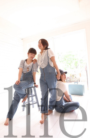 お揃いのサロペットを着こなし、