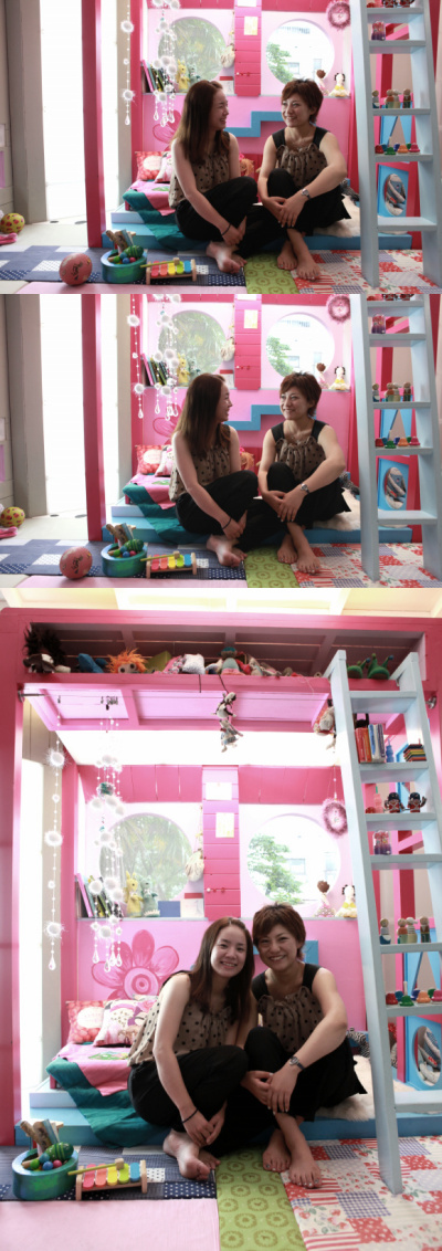 せっかくなので、新入スタッフSakiちゃんと恵比寿店のマスコットであるピンク部屋で撮影をしました。