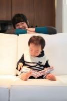 彼は、真剣に本を読んでいます。 私は、後ろから可愛く見ています。 決して食べようとしている訳ではありませんよ^^