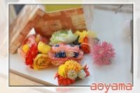 青山店に新しいコサージュが入りましたー☆ なんと全部手作りです!! 青山スタッフのokamuraの友達が作ってくれたものなのですが ある日、「スタジオのコサージュ全部壊れたぁ~~」との okamuraの嘆きを聞き、それを覚えてくれていた友達が お花、ビーズ、後ろに付いてあるピンや金具・・・ その他材料など色んなところから買い集めて、せっせせっせと作ってくれていたそうです。 いま青山店に遊びに来てくれた女の子たちの頭には きっと、このお花たちが付きます~♪ 大人にも使えますので、マタニティのママさんたちも楽しみにしていてください^^* 大切に使います! 作ってくれたhiromiチャン本当にどうもありがとうーーー!!!! 今度は手作り帽子待ってますね(笑)ふふふふh・・・