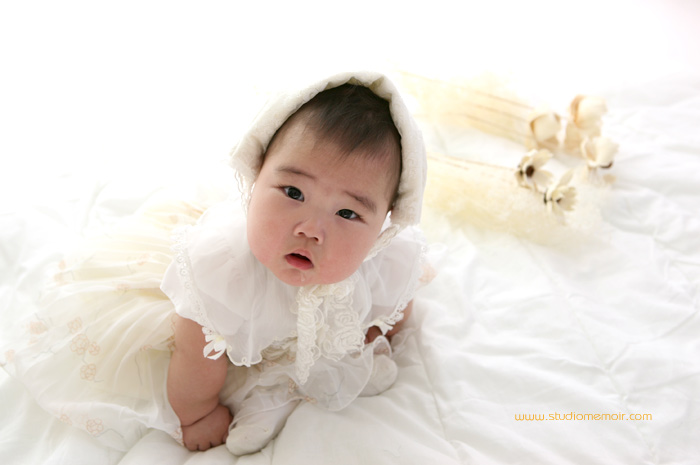 結婚式用に準備したドレスで、記念撮影☆ニコニコとっても愛想がよくて、とってもキュートなべびちゃんでした。