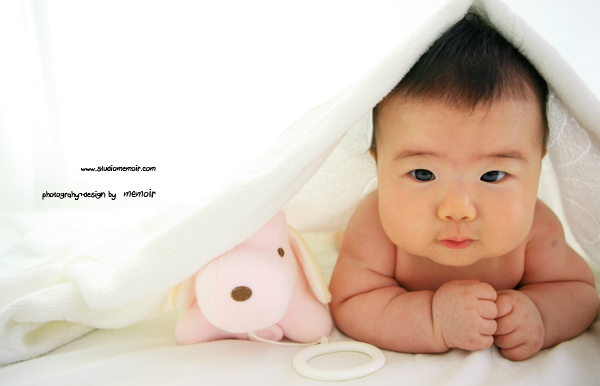 お気に入りのわんちゃんのぬいぐるみと一緒にご機嫌な撮影♪100日記念の撮影でした??