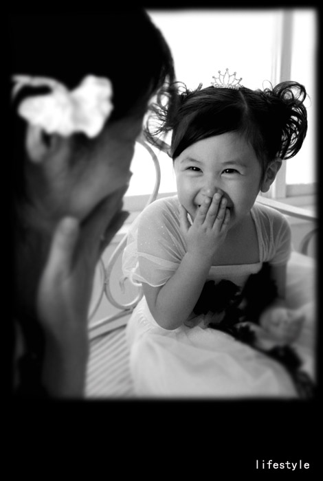 七五三撮影の後、ドレスに着替えたくないと言っていましたが、ママとお揃いのドレスにしようと提案したら“ママかわい?!!”と喜んで楽しく撮影が出来ました。この写真はアシスタントが“そんなの関係ね?”と笑わすとママと暗黙の合図をしていた時でしたよね。素敵です。