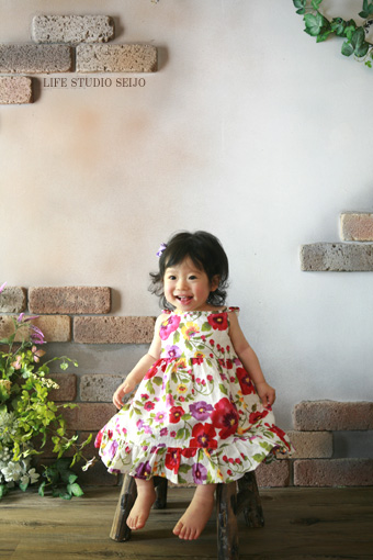 花柄のサマードレスを着てご機嫌な表情☆夏をさきどりして元気いっぱいの笑顔を見せてくれました??