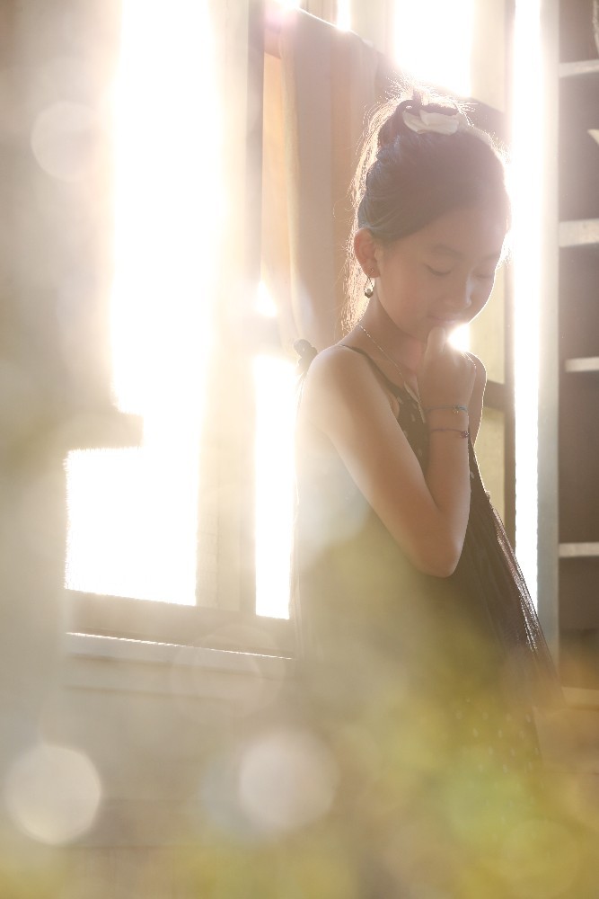 西日を最大限きらきらと写しだし、明るく彼女のしぐさと表情を際立たせます。