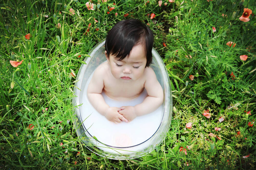 自然との調和がとれたミルクバス撮影での美しさは、私たち大人がお作りします。
