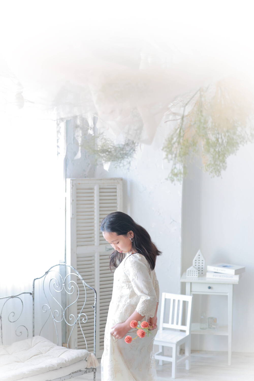 彼女の写真を撮りながら、いつもの雰囲気とは違った角度を探しました。