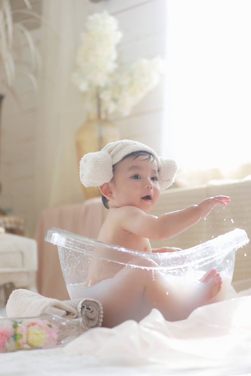 ミルクバスの良さは、お風呂という日常の姿をスタジオという非日常の中で写真におさめられるというところだと思います。