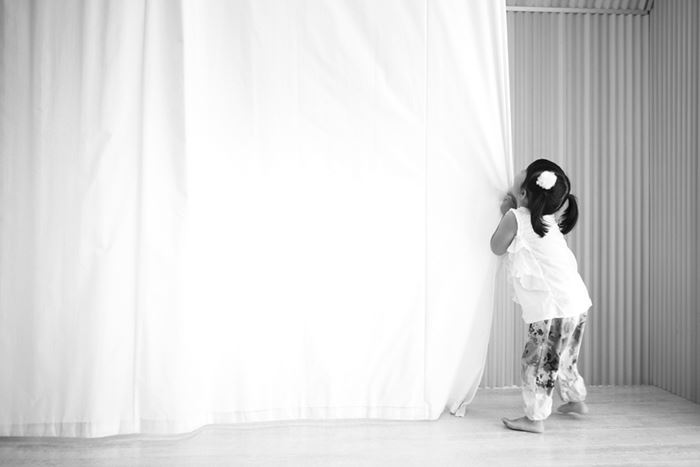 今となっては出番が少ないこのカーテンは、子供らしい仕草を引き出すことに大きな力を発揮してくれる。