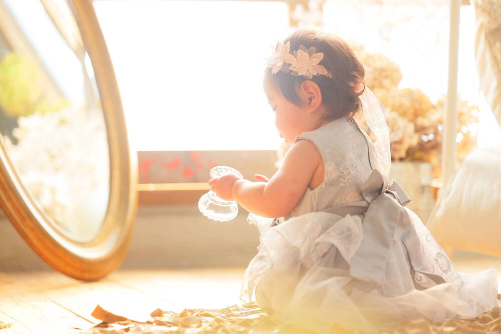 例えばこの写真、ドレスに身を包んだ女の子がガラスの小物に夢中になっている瞬間です。