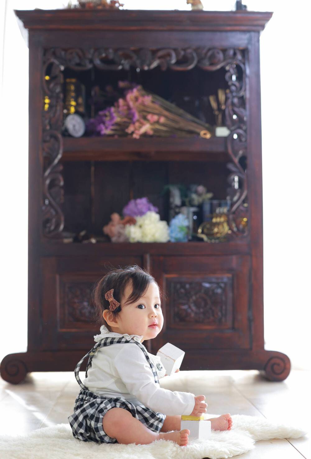 ママのお膝で甘えながら、大きな瞳にギリギリまで溜めた涙。