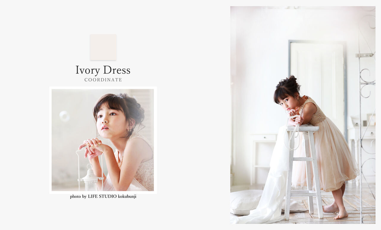 ライフスタジオでは撮影に訪れる年代に合わせて、ドレスをご用意しています。1歳~7歳までをメインにレースやチュール、ワンピースタイプなど様々なドレスがあります。小物やヘア飾りによって、可愛らしくもできれば、洗練されたスタイルにも出来るおしゃれなドレスは大人気です。(ドレスの種類や数は店舗によって異なります)