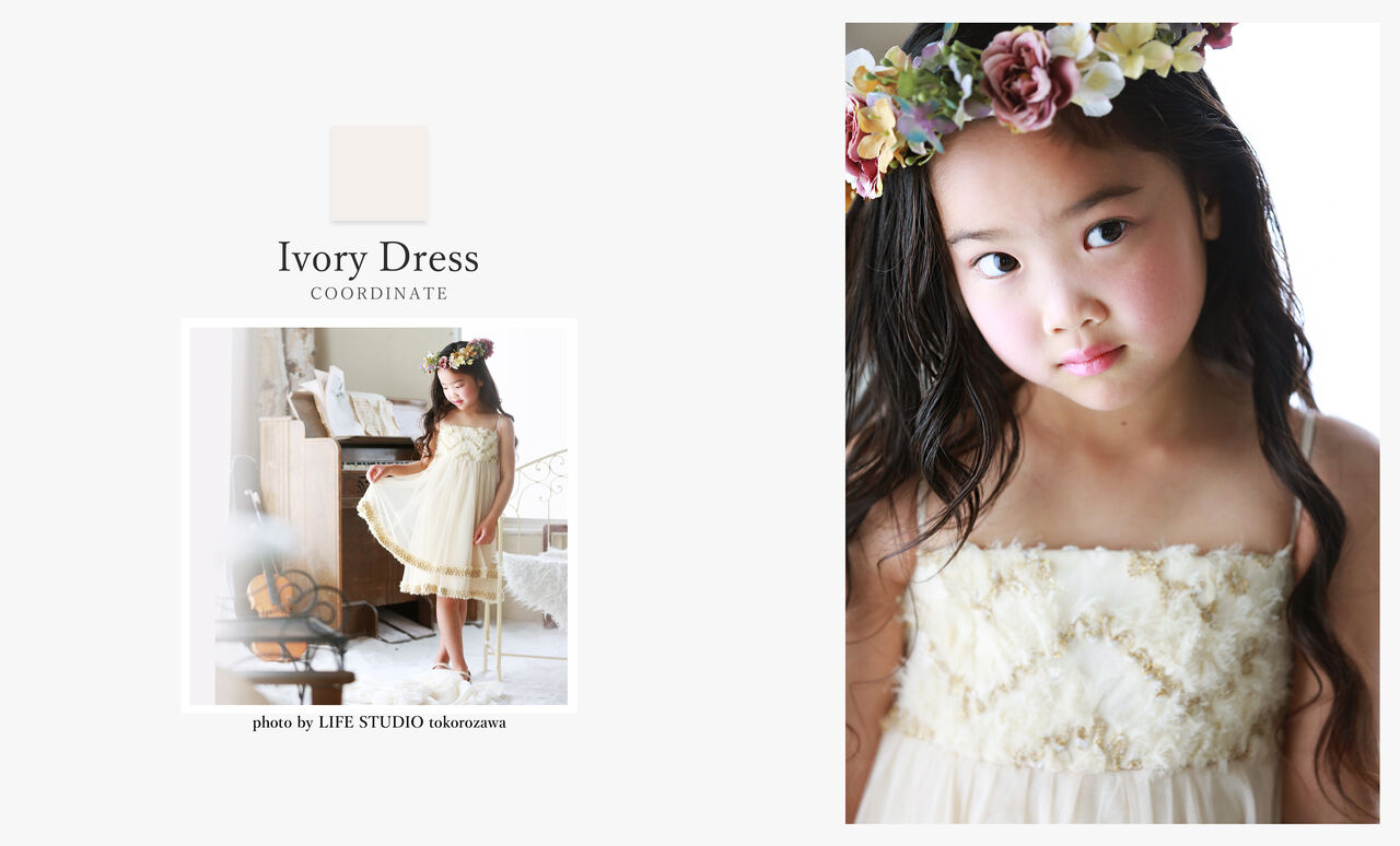こちらのドレスも上の写真のドレスと同じタイプのものになります。3歳程度のお子様が着ても可愛らしい仕上がりになります。