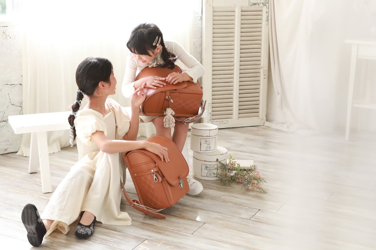 小学生のきょうだいがいるご家庭には、きょうだい揃ってランドセルで撮影する記念写真が人気です。一緒にじゃれ合ったり、楽しそうに笑い合う姿は、家族の中でもかけがえのない瞬間として残ります。今しか見られないきょうだいの可愛らしい姿を写真に収めるため、ランドセルや思い出のアイテムをぜひ持ち込んでください。