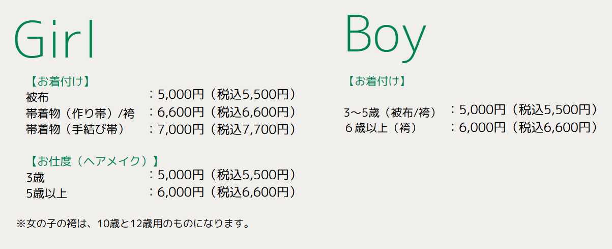 1週間前から前日キャンセル:お支度代の50%(お着付け代込み)
